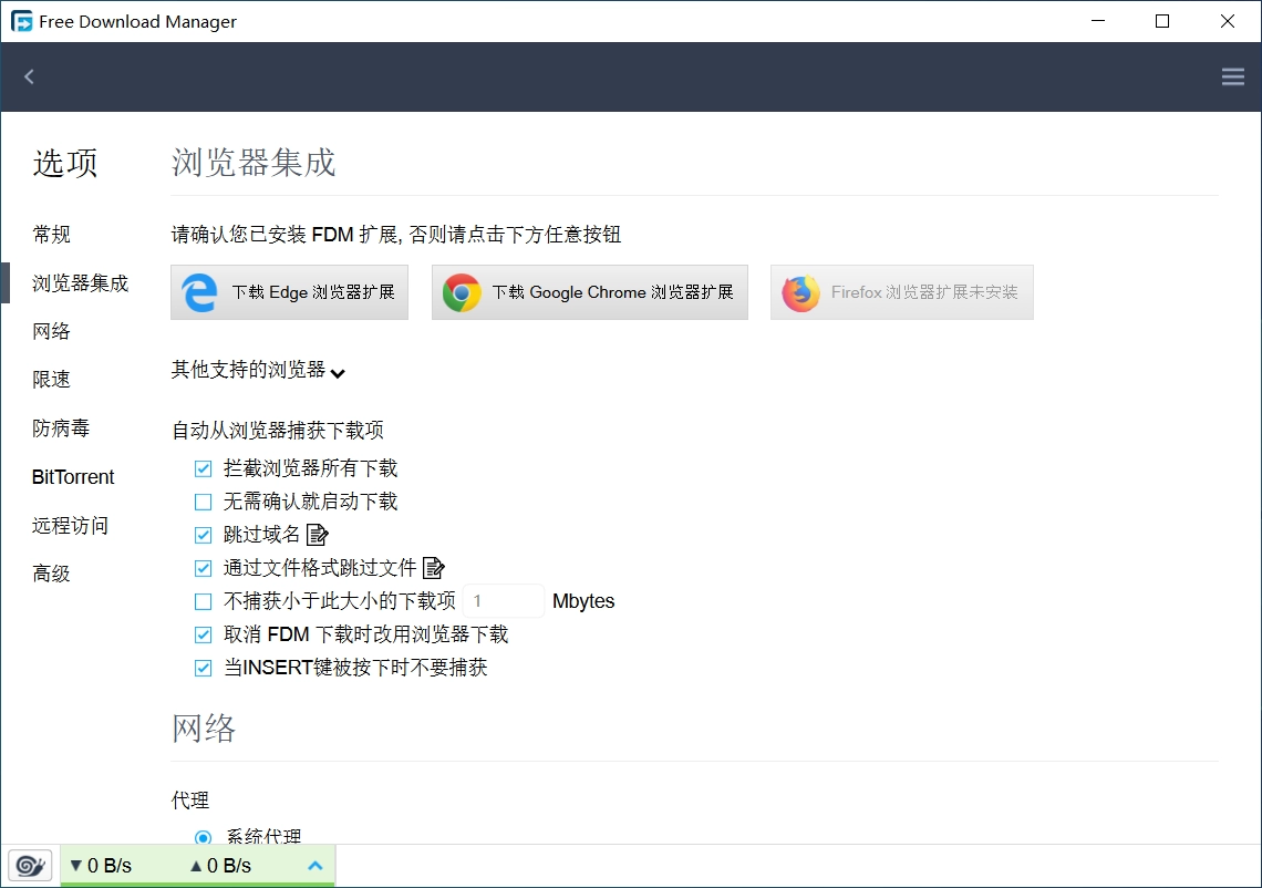 如果你想要该软件接管所有浏览器的下载操作,可能需要安装对应的扩展,比如上方图片中的edge以及Chrome等等都是安装了对应的扩展才能接管的。