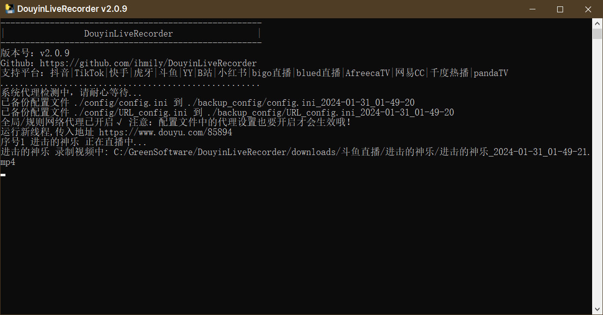 地址(一行一个直播间),然后运行DouyinLiveRecorder v2.0.9.exe 即可开始录制。使用必看: